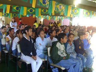 No dia 21 de Junho o Colégio Estadual Vital de Oliveira foi entregar a Bandeira da Paz na Escola Djalma de Freitas. A Gestora convidou a todos para cantar o Hino Nacional e depois convidou dois alunos da platéia para receber a Bandeira da Paz.