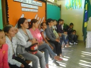 A diretora explicou o objetivo da realização do simulado e o porquê da abertura dos pais e/ou responsáveis poderem ajudar os alunos na execução das provas, pois os mesmos ajudariam os discentes a melhorarem suas notas tendo mais chances de participarem também do projeto acima citado.